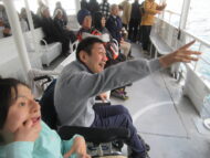 今年度も、バスが愛・とーぷに到着すると、利用者さまの興奮は最高潮になりました。