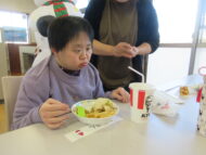 昼食にチキンを食べみなさまとても喜ばれておりました。